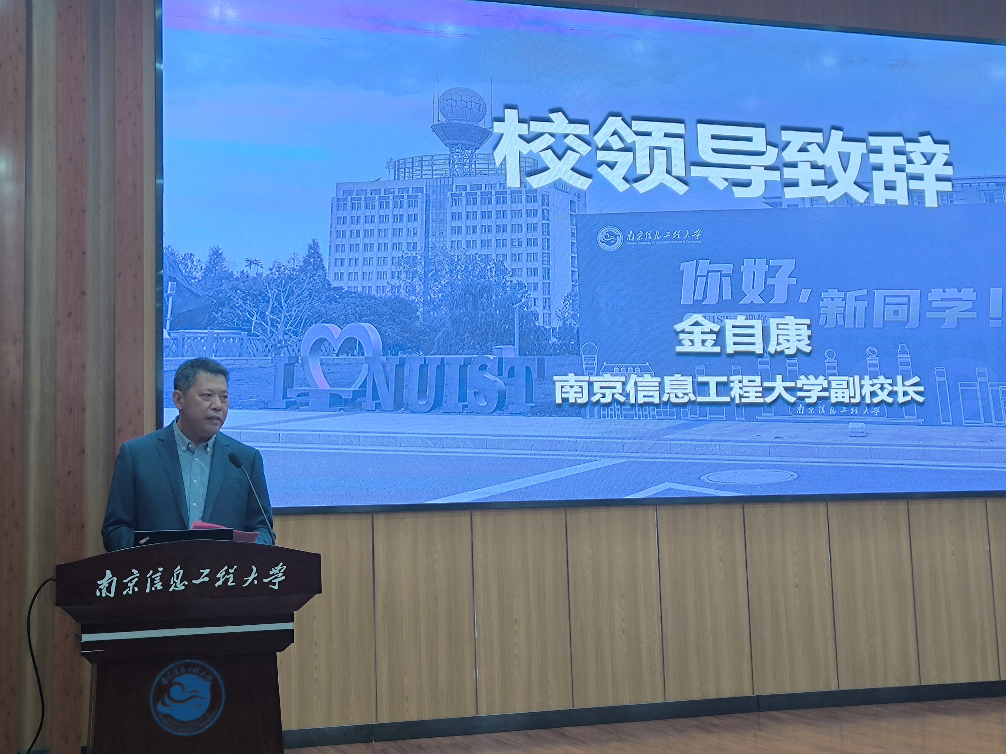仪式在全场齐唱庄严雄壮的《中华人民共和国国歌》声中拉开帷幕。金自康对范晓松一行表示热烈欢迎,并对加入长望学院的全体新生表示祝贺。他说:今年是南信大建校65周年,学校在学科建设、人才培养、科研实力等方面硕果累累,这都离不开涂长望先生这样老一辈科学家的精神传承,离不开一代又一代南信大人的拼搏和积淀,他寄语新生,要以修己立身、以立志导航、以奋斗圆梦,成长为堪当民族复兴重任的时代栋梁。