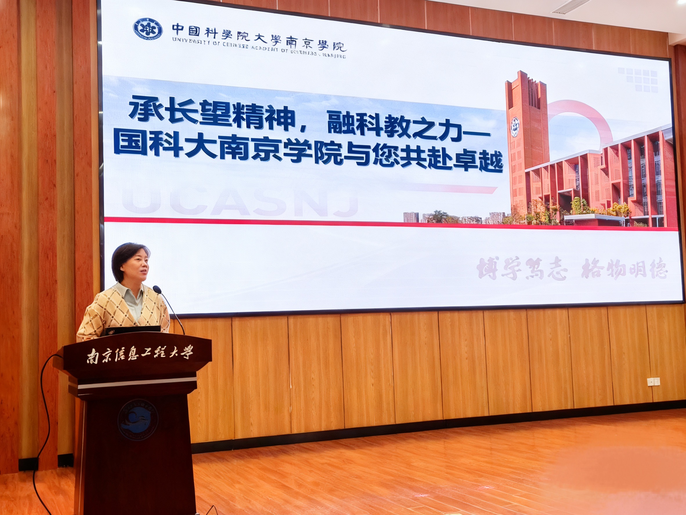 范晓松以《承长望精神,融科教之力——国科大南京学院与您共赴卓越》为题作专题报告。她介绍了中国科学院大学南京学院在科研平台、师资队伍、课程教学、学术讲座等方面的资源优势,详细解读了两校“本硕博贯通联合培养”项目的特色与内容,并阐述了面向本科生的“卓越人才培养计划”实施方案。最后,她结合卓越研究生联合培养的丰硕成果,鼓励新一届“小望仔”们踊跃参与,在学习和科研中追求卓越、实现自身价值。