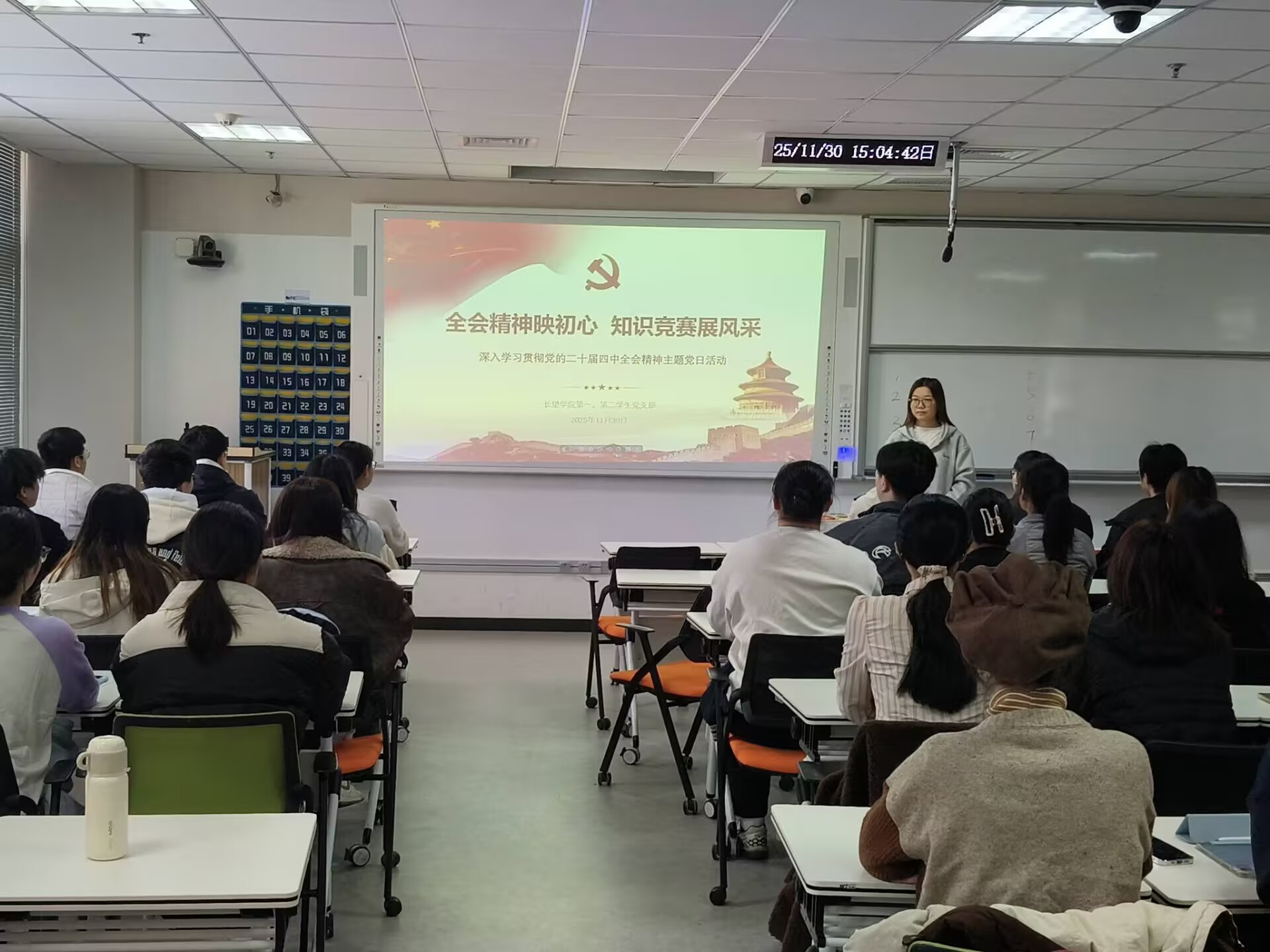为深入学习贯彻党的二十届四中全会精神,11月30日,我院学生党支部在临江楼B509成功举办了“全会精神映初心,知识竞赛展风采”主题党日活动。活动以知识竞赛的形式展开,第一、第二学生党支部全体党员参加,旨在以赛促学,推动全会精神入脑入心。