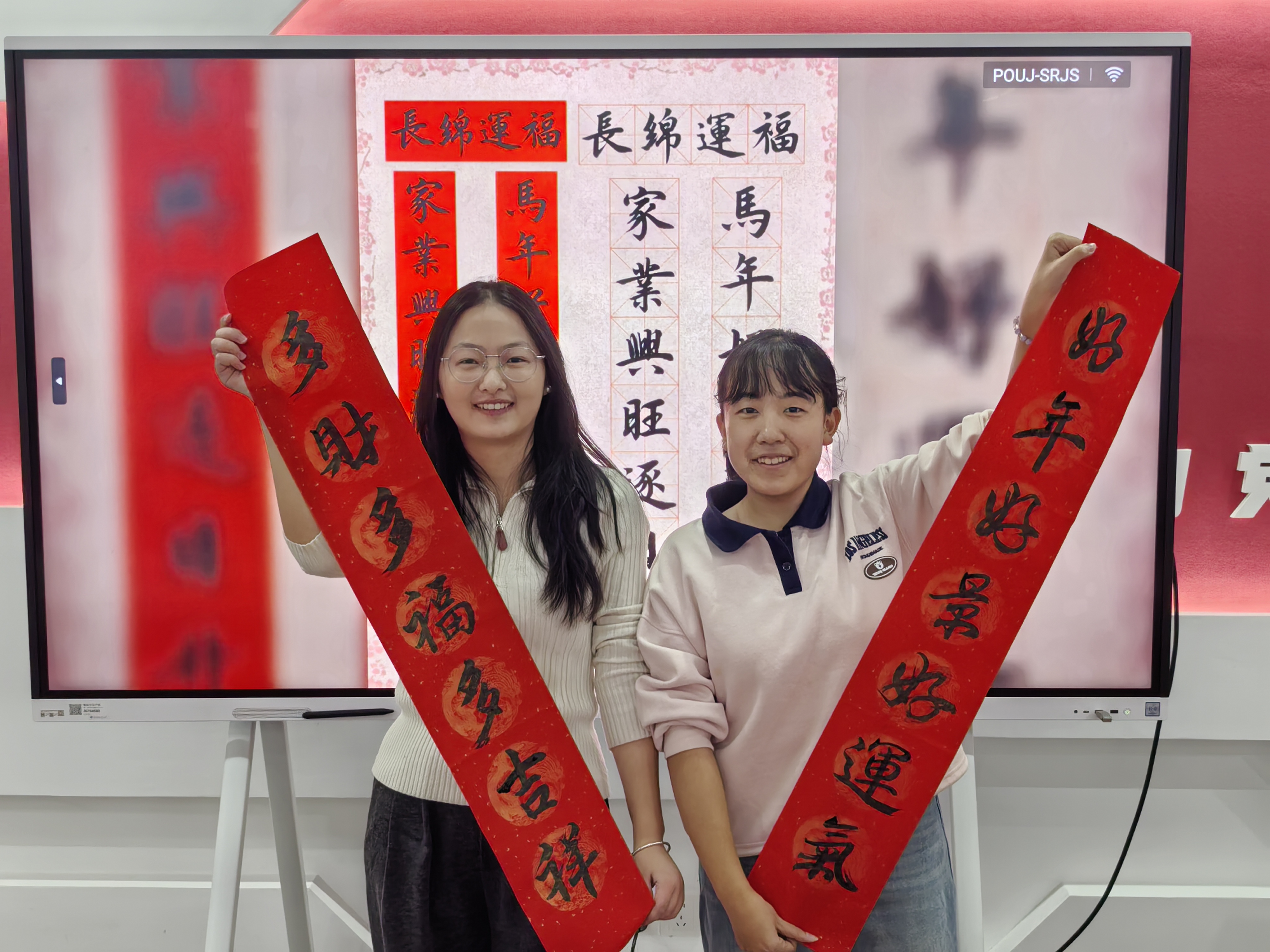 从提笔蘸墨的小心翼翼,到挥毫书写的行云流水,同学们将对新年的期盼、对宿舍生活的美好愿景,凝练成一句句喜庆的春联。“多财多福多吉祥”“福满人间”……红纸上的墨字刚劲有力,剪纸窗花、生肖福贴的点缀,更让现场年味十足。